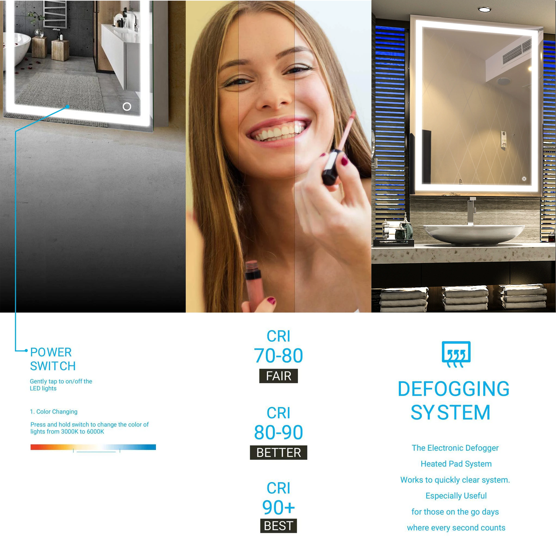 Features Of 36" X 48" LED Bathroom Lighted Mirror